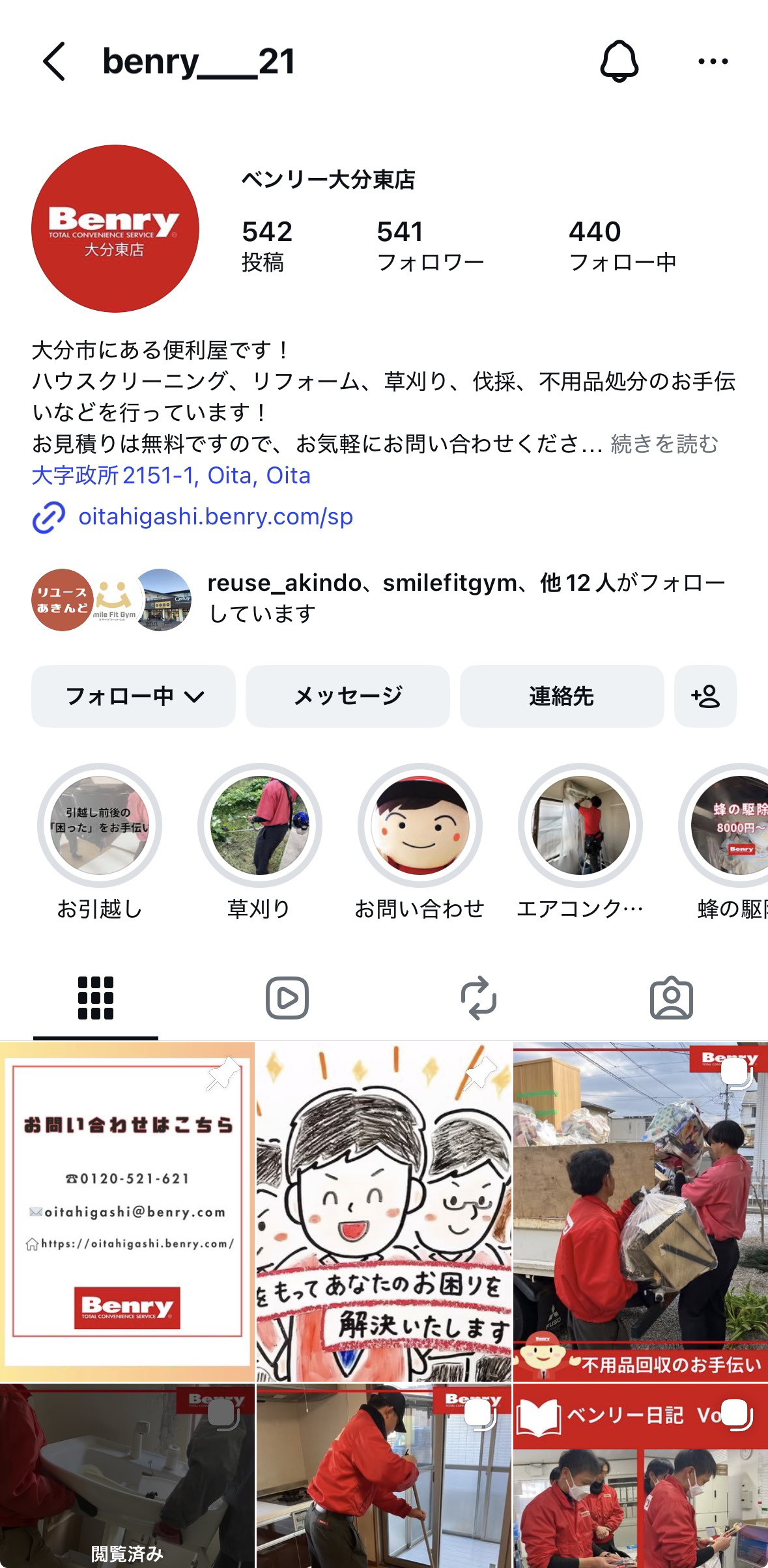 ベンリー大分東店では、引越しのお手伝いや不用品整理、ハウスクリーニングの作業風景をInstagramで随時ご紹介しています。